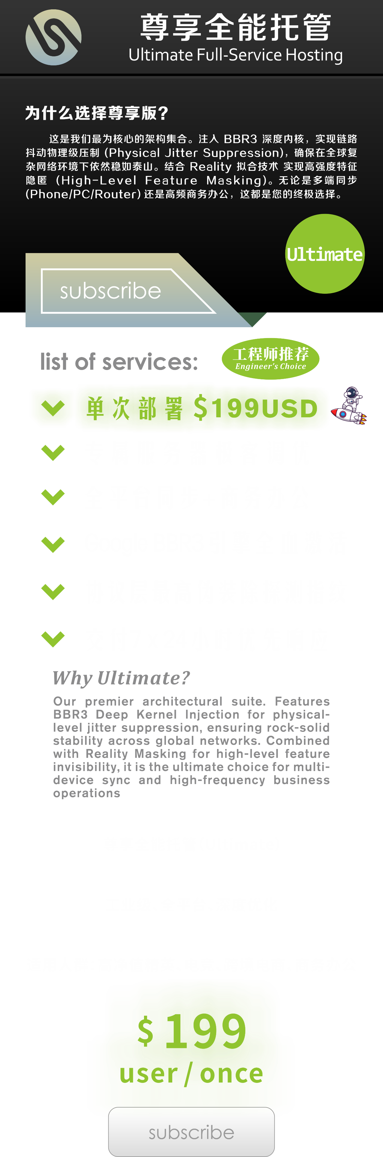 “ 我们不生产廉价的流量,我们只重构底层基建。每一条线路都经过 Linux 内核级的参数调优,只为服务那 1% 对速度和安全有近乎偏执要求的全球精英。”